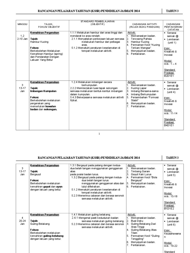 Kemahiran pergerakan melalui aspek 1, murid menguasai pelbagai corak pergerakan dan kemahiran motor yang diperlukan untuk. Rpp 1 lembar pendidikan jasmani, olah raga & kesehatan. Di bawah ini koleksi rpt pendidikan jasmani kesihatan tahun 3 2020 kssr semakan. Tahun 3 senarai semak @ lembaran (unit 45) emk: Baca versi flipbook dari pendidikan jasmani dan pendidikan kesihatan tahun 3 (kssr semakan).