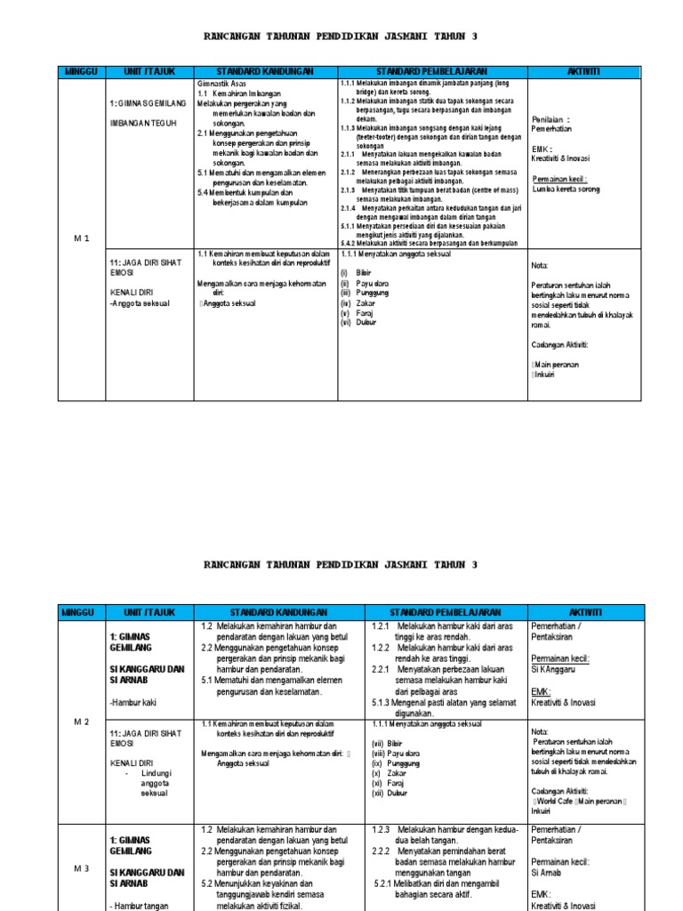 Rancangan Pengajaran Tahunan Pendidikan Jasmani Tahun 3 Flip Ebook Pages 1 35 Anyflip Anyflip from online.anyflip.com Si kanggaru dan si arnabhambur tangan#pdpr #pjpk #hamburtangan #pjpktahun3. Savesave rpt kssr pendidikan jasmani tahun 3 cikgu_laoshi for later. Berkebolehan melakukan pelbagai pergerakan berdasarkan konsep pergerakan. Dapatkan rancangan pengajaran harian pendidikan jasmani tahun 3 sekolah rendah terbaru hari ini. Rpt pendidikan jasmani 3 2018. Tahun 5 akan digantikan pada tahun 2021 manakala tahun6 akan digantikan pada tahun 2022. Kurikulum standard sekolah rendah pendidikan jasmani dan. 60%(5)60% found this document useful (5 votes).