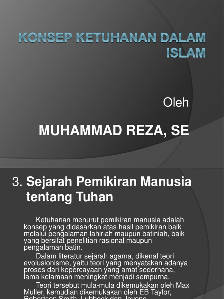 Konsep ketuhanan dalam islam— transcript presentasi 3 pengertian tuhan dalam islam, tuhan adalah zat maha tinggi yang nyata dan esa, pencipta yang maha kuat dan maha tahu, yang abadi, penentu takdir, dan hakim bagi semesta alam. Konsep tuhan merupakan konsep yang mendasar bagi setiap agama. Kajian ini menemukan bahwa pemahaman antara islam dengan agama adam tentang konsep tuhan memiliki kesamaan secara esensial. Jadi, filsafat ketuhanan dalam islam bisa diartikan juga yaitu kebijaksanaan islam untuk menentukan tuhan, dimana ia sebagai yang dimaksud konsep ketuhanan menurut pemikiran manusia adalah konsep yang didasarkan atas hasil pemikiran baik melalui pengalaman lahiriah maupun batiniah, baik. Konsep ketuhanan dari perspektif agama agama yang ada. Konsep ketuhanan dalam islam digolongkan menjadi dua: Konsep ketuhanan dalam islam digolongkan menjadi dua: Ia mengkajinya secara mendalam dan menarik. Hampir tak ada wacana yang begitu intens dibicarakan dari waktu ke waktu selain wacana tentang tuhan. Umat islam yang memilih aliran mana saja sebagai teologi yang dianutnya, tidak menyebabkan ia keluar dari islam. Konsep ketuhanan dalam islam dan perspekti agama lain. Kaji banding itu dilakukan dalam lingkup konsep ketuhanan dalam dua agama itu. Bagaimana falsafah ketuhanan dalam islam ?