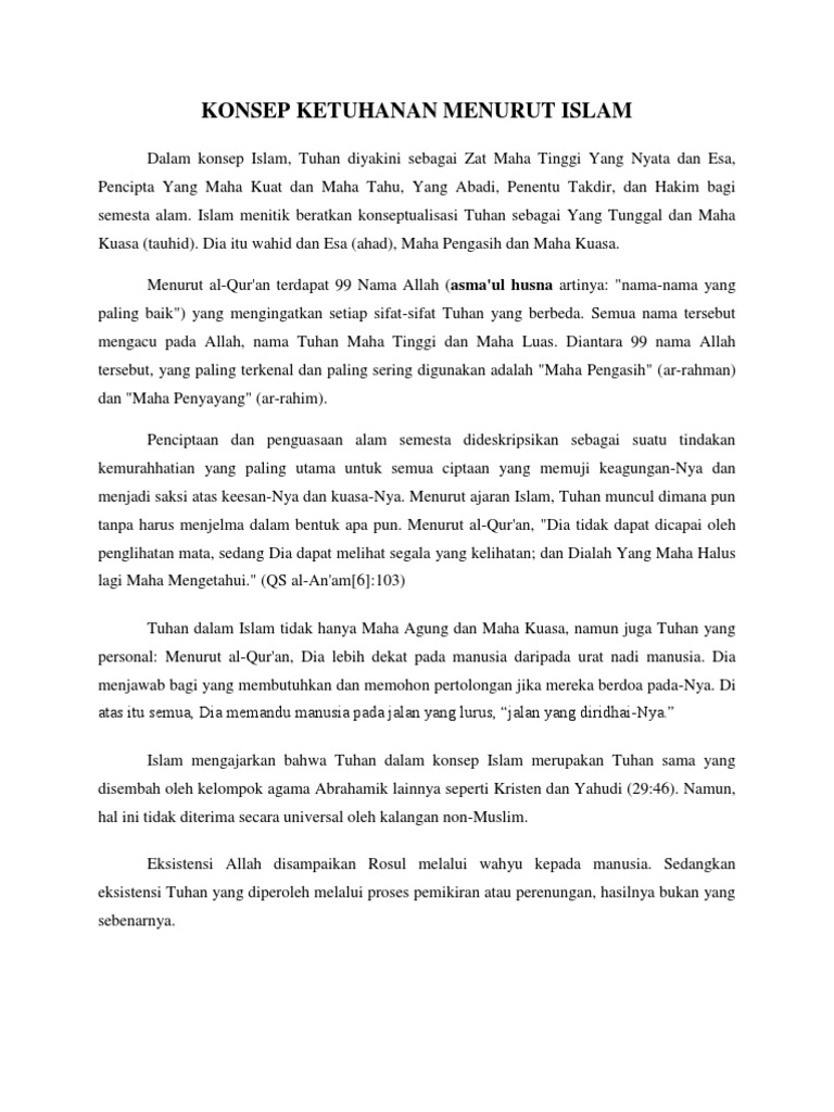 Konsep ketuhanan dalam islam digolongkan menjadi dua: Konsep ketuhanan menurut islam perlu dipelajari lebih lanjut karena banyaknya konsep ketuhanan yang ada di dalam kehidupan manusia. Mengetahui pembuktian wujud tuhan dalam islam.3. Sejarah pemikiran manusia tentang tuhan. Bagaimanakah pemikiran manusia tentang tuhan ? Deskripsi iman kepada allah swt merupakan konsep dasar seseorang meyakini filsafat ketuhanan dalam islam a. Hal ini dinyatakan antara lain dalam surat ali imran ayat 62, surat shad 35 dan 65, surat. Makalah konsep ketuhanan dalam islam disusun oleh : Makalah ini berisi pembahasan tentang salah satu segid ari ajaran islam yang seharusnya mendapat perhatian dan pengkajian kembali. Bab i konsep ketuhanan dalam islam. Kaji banding itu dilakukan dalam lingkup konsep ketuhanan dalam dua agama itu. Ia mengkajinya secara mendalam dan menarik. Mayoritas konsep esensial islam adalah monoteisme yang ketat, yang disebut tawḥīd (arab: