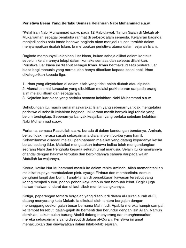 Sejarah Perayaan Maulid Nabi Muhammad Republika Online from static.republika.co.id Yang terjadi setelah peristiwa pasukan bergajah abrahah hendak merusak ka'bah pada tahun gajah. Umat islam memperingati maulid nabi atau hari kelahiran nabi muhammad saw pada setiap tanggal 12 rabiul awal yang kali ini bertepatan dengan sabtu, 9 november 2019. Masa menyusui nabi muhammad saw pertama kalinya. Sejarah kelahiran nabi muhammad saw. Nabi muhammad saw lahir sesaat sebelum fajar hari senin, 12 rabiul awal tahun gajah (50 hari setelah peristiwa gajah), bertepatan dengan tanggal 20 april 571 m di mekkah, tepatnya di lembah abu tholib, yaitu. Nabi muhammad lalu menerima wahyu pertama pada saat berusia 40 tahun di gua hira. Begitulah sekelumit sejarah singkat kelahiran nabi muhammad saw. Dalam waktu yang sama, pada malam kelahiran nabi muhammad, tasik sava atau semenanjung yang dianggap suci oleh orang.